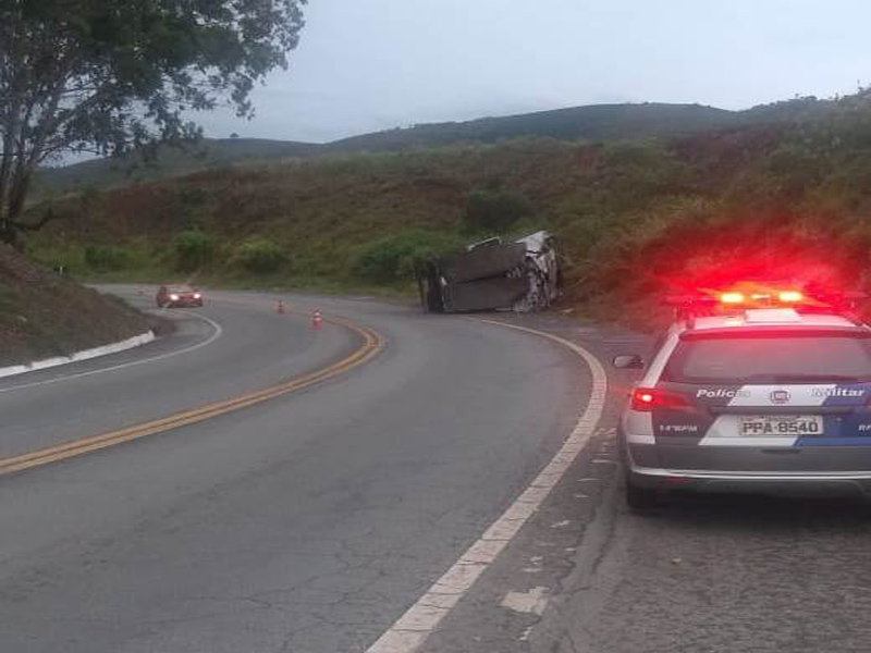 Um caminhão carregado com material PVC tombou no km 150 da BR 262, no trecho conhecido como Curva da Ferradura, próximo à chegada de Ibatiba, por volta das 7 horas desta quinta-feira (13).