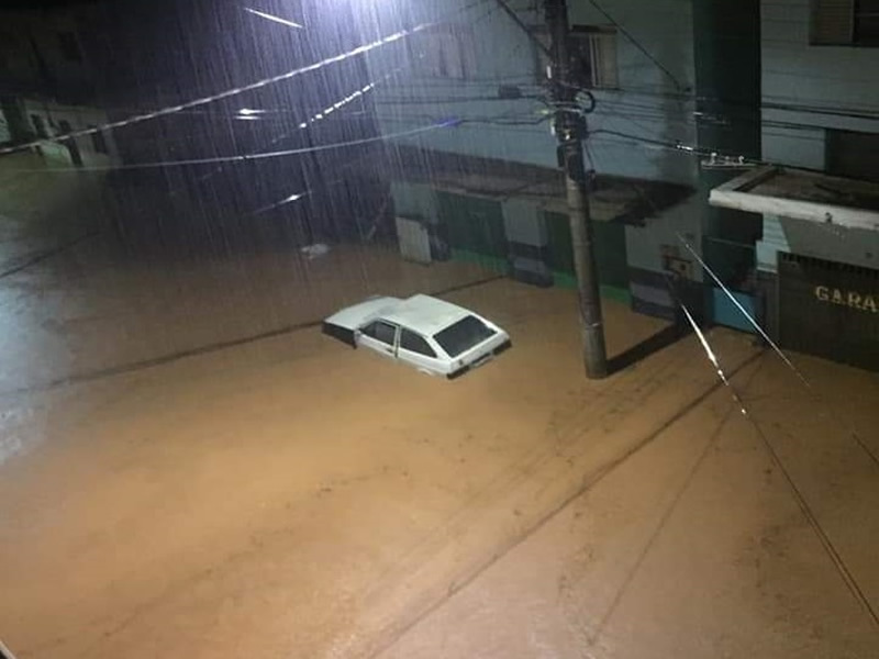 Em Iúna, o Rio Pardo transbordou e inundou ruas.