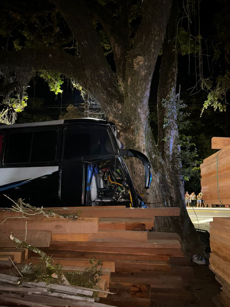 O trânsito precisou ser interditado nos dois sentidos da rodovia, enquanto as equipes de resgate atuavam no atendimento às vítimas. Imagens de uma câmera de segurança mostram o momento em que o ônibus perde o controle da direção e atinge a árvore por volta das 18h30. Menos de quatro minutos depois, uma ambulância que passava pelo local parou para iniciar os atendimentos.
