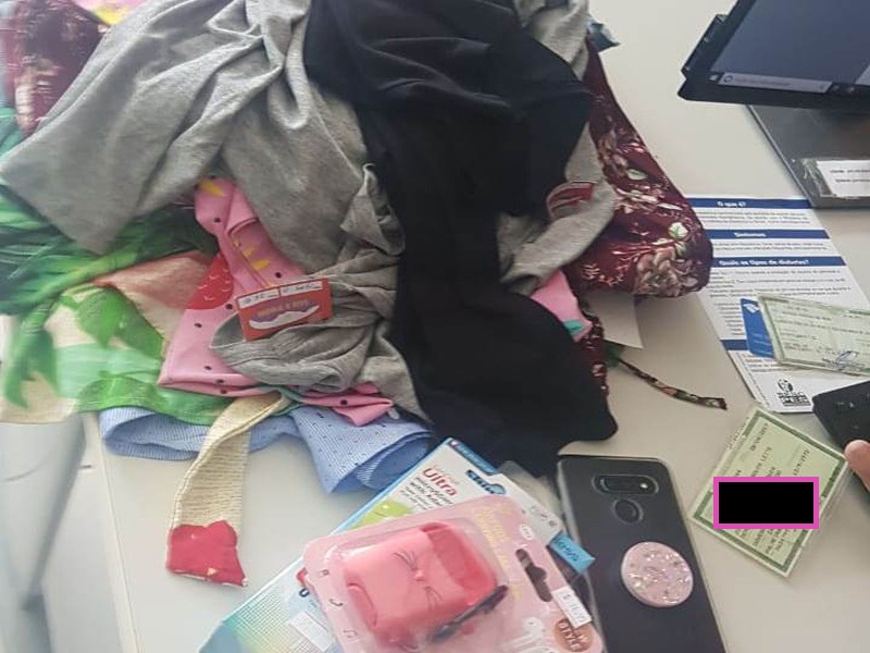 As roupas e os objetos furtados estavam na bolsa da mulher detida.