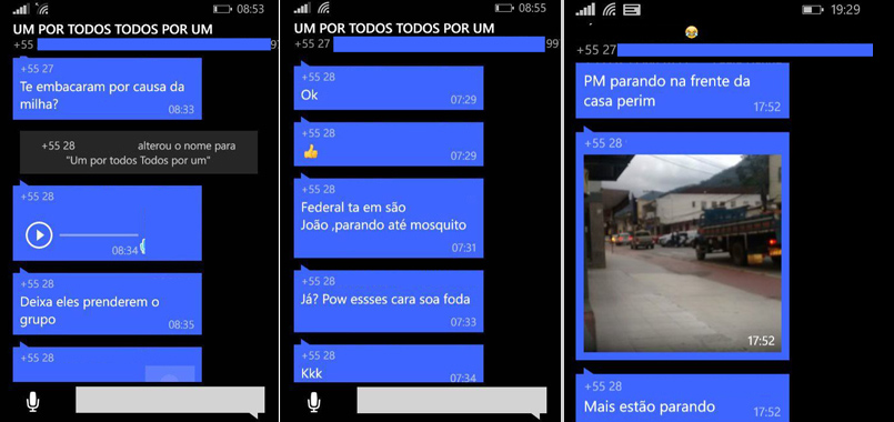Segundo o Boletim de Ocorrência da PM, "em tal grupo é comum encontrar fotos das viaturas e textos informando a localização das guarnições, tais como "Polícia Militar no Caxixe, cuidado", ou "PRF em Pedra Azul", além de áudios denegrindo os policiais militares com xingamentos e palavras de baixo calão".